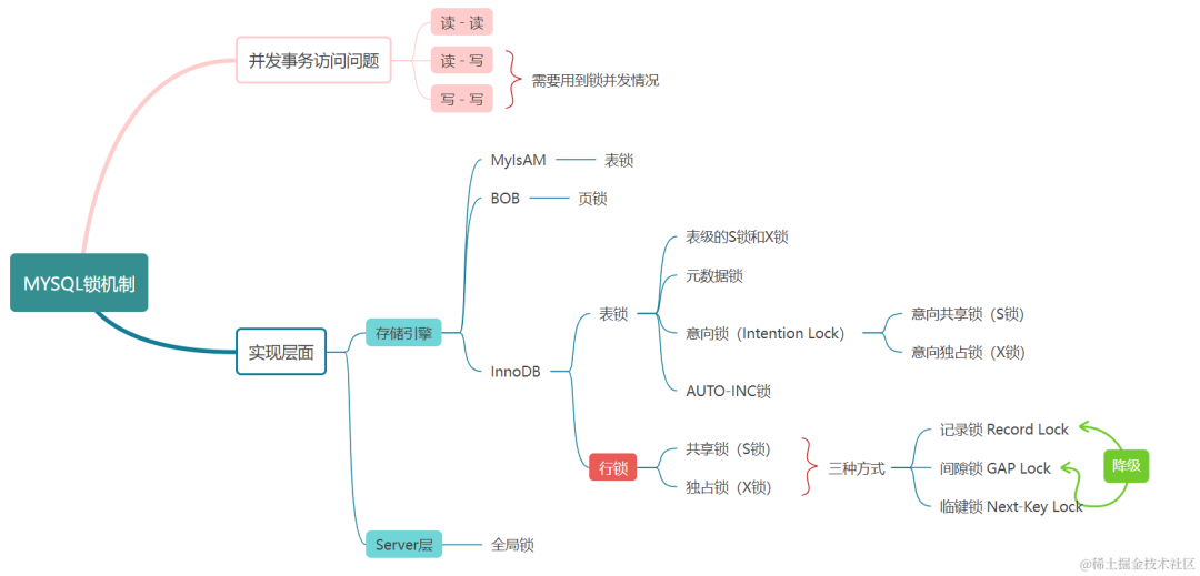 没事,先看个锁知识大纲,先对锁的位置和锁归属的存储引擎有个前置了解!