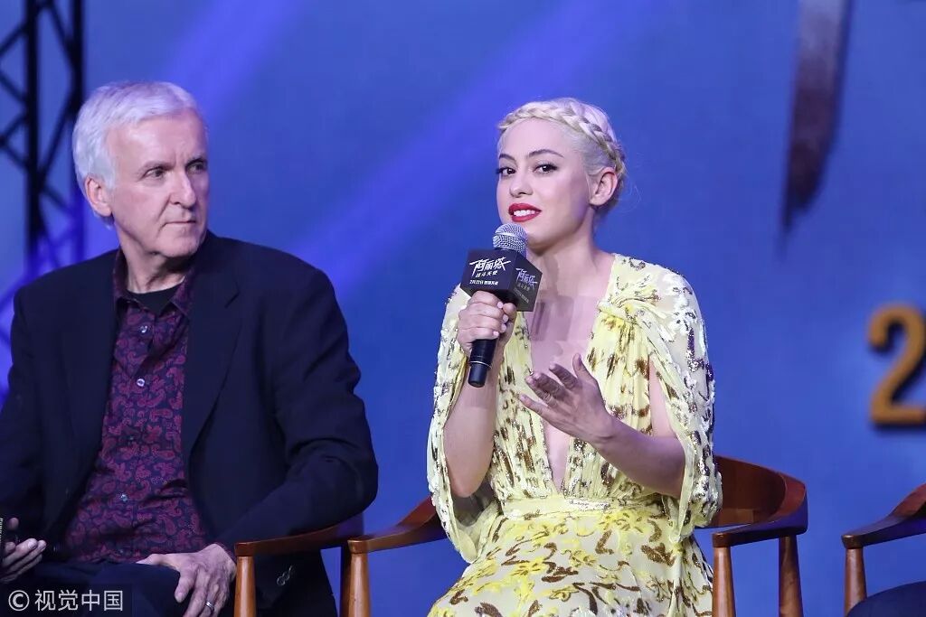 ▲2019年2月18日,女战神“阿丽塔”罗莎与卡梅隆在北京出席电影《阿丽塔:战斗天使》的记者会