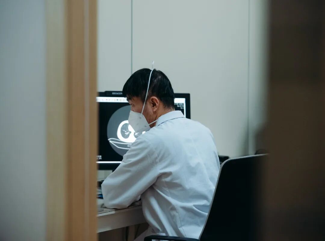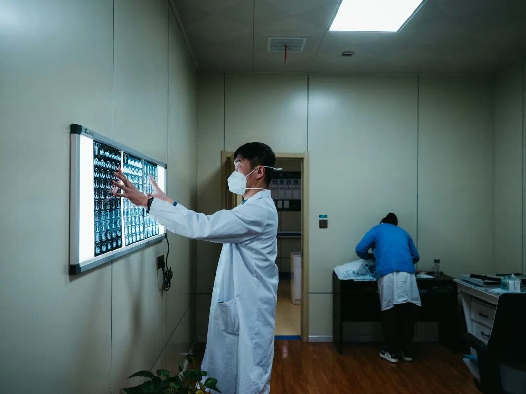 影像科有3个大夫,1个护士,7个技师,一共11个人,平常是5个人倒班。最近,科里大概感染了7个医护。侯俊是科室主任,症状稍轻,在家休息了一天,就来上班了。带着37度2的低烧,他除了白天的日常工作,晚上还要值夜班,给病人做检查,出报告,都是一个人。