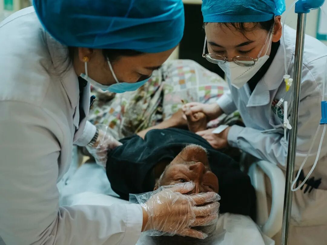 “静推20毫克安定!准备心电图!”晚上10点左右,医护人员为独居老人贾新发做药物治疗。高烧43度,贾新发全身抽搐,出现惊厥,CT显示双肺感染严重。陪在身边的是他的外甥,也是照顾贾新发最多的人——他今年60岁,有先天性疾病,没有结婚,一直自己住。