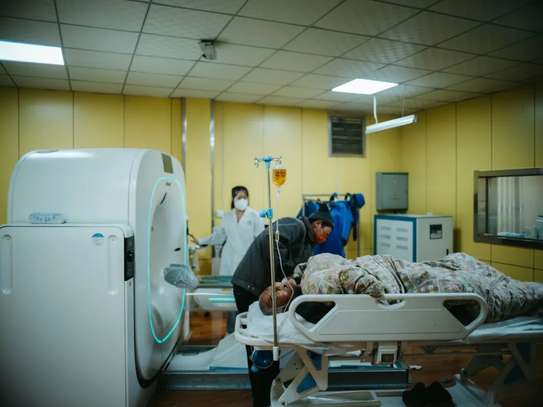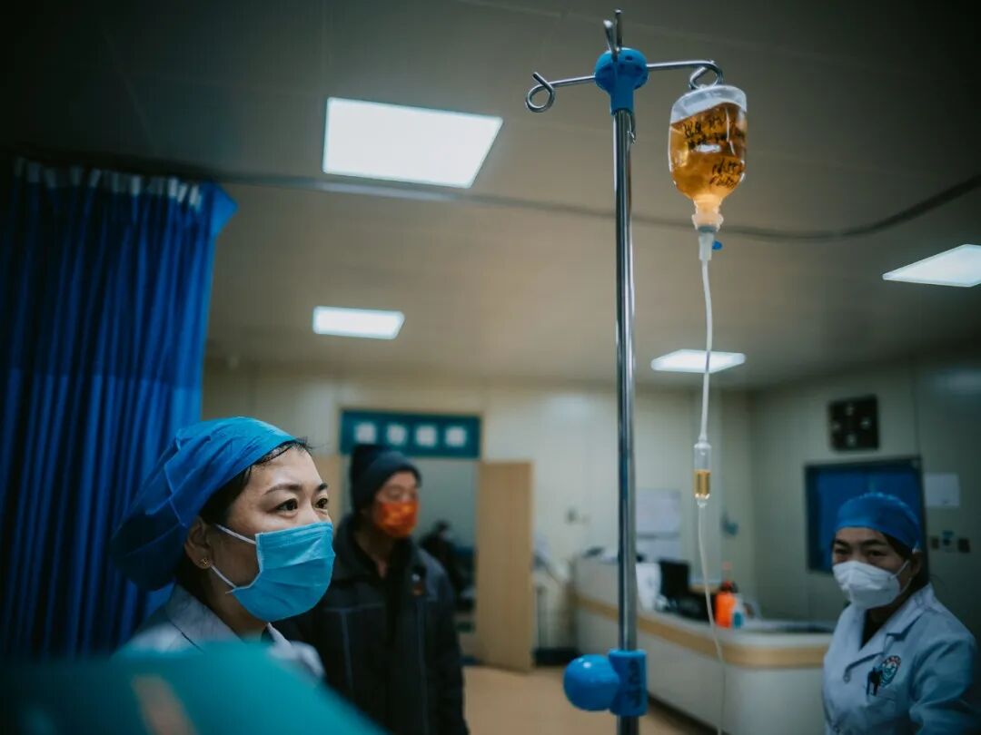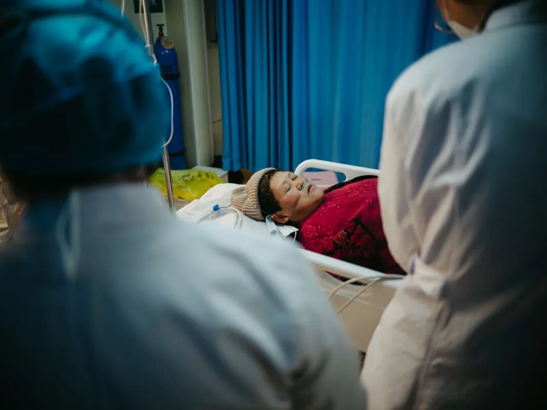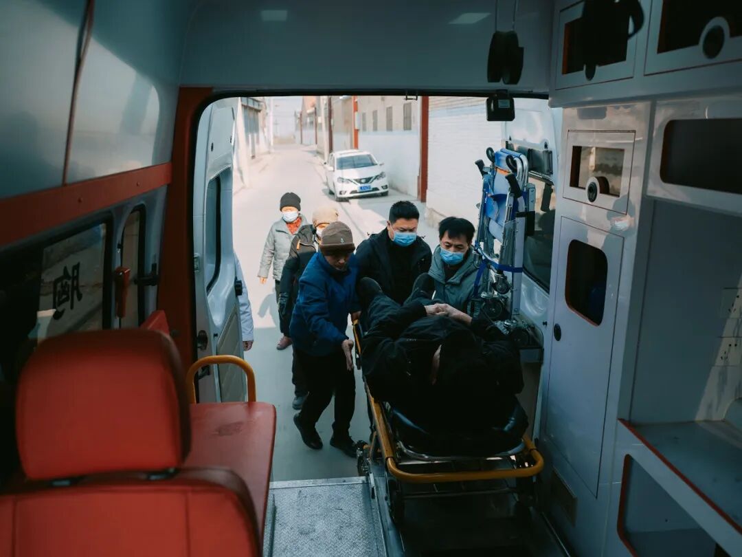 经过急救,贾新发体温从43度降到39度5,但情况依然不乐观,医生建议住进重症监护室。当晚,重症监护室病房已经没有床位,医生给其它医院打电话,询问情况。2023年到来前一个小时,救护车载着贾新发转院,驶入县城的夜色。