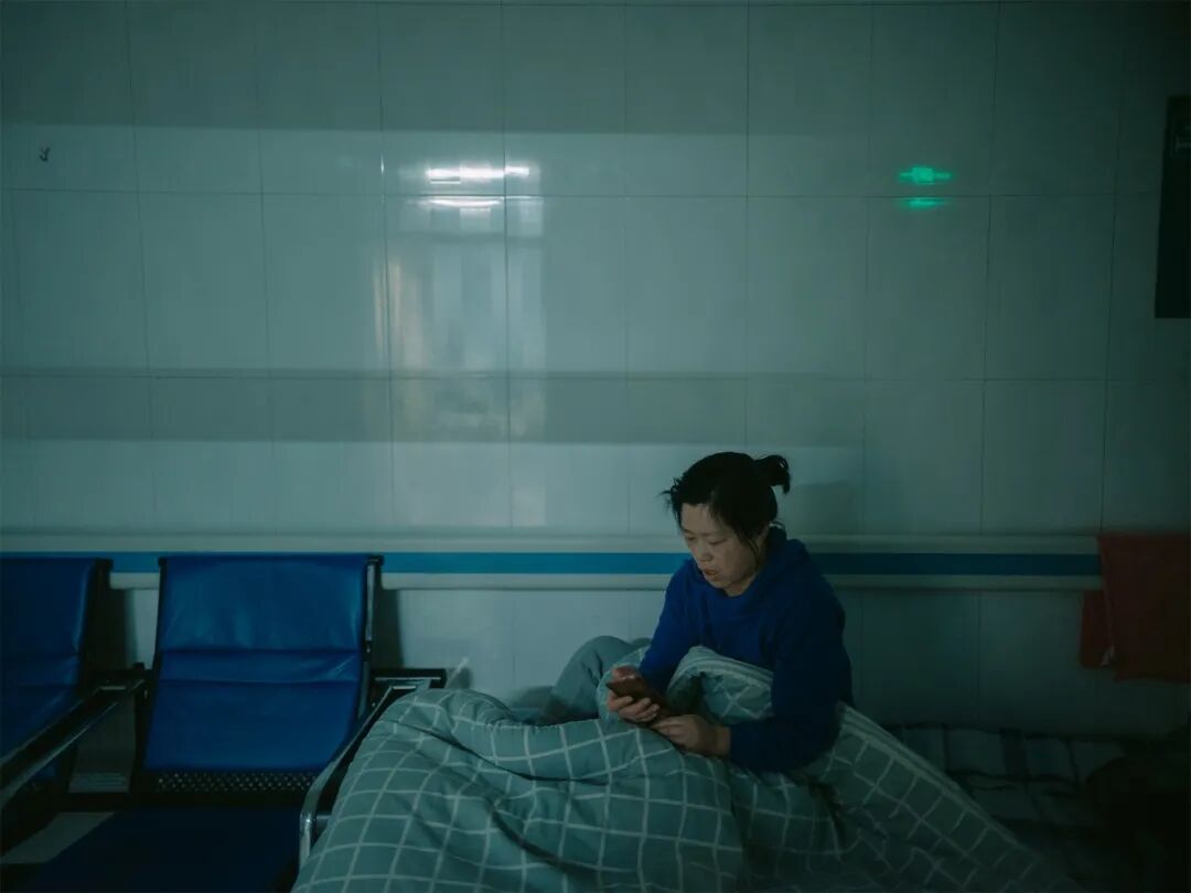 ●因为病床紧张,吴慧琴临时在走廊的折叠床休息、陪护。