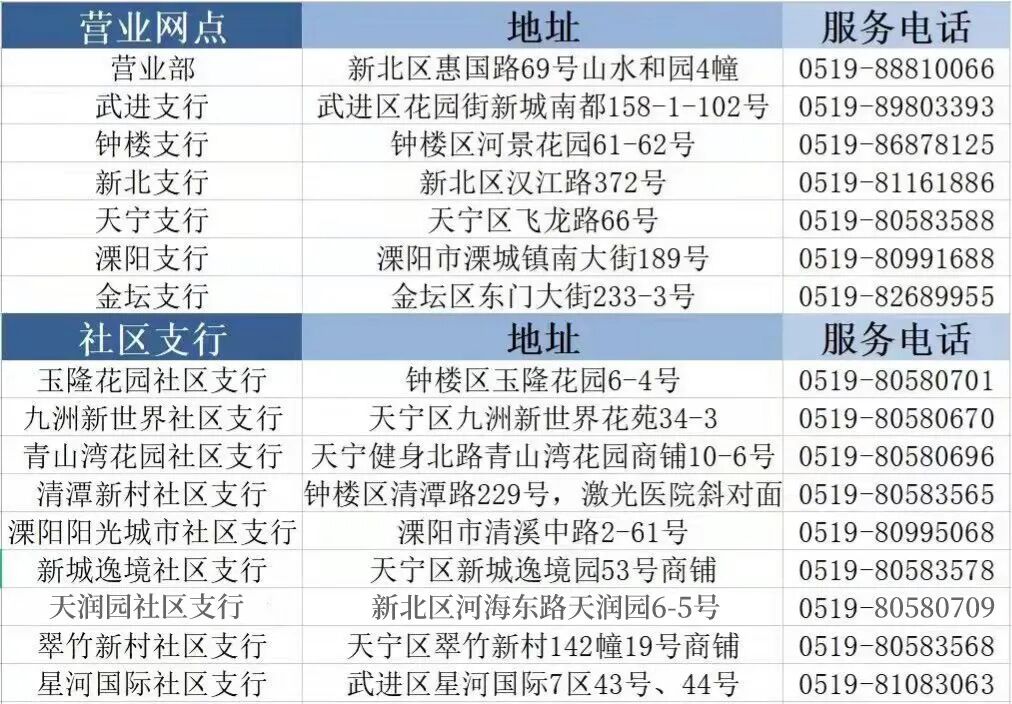 兴业银行常州分行各营业网点一览表