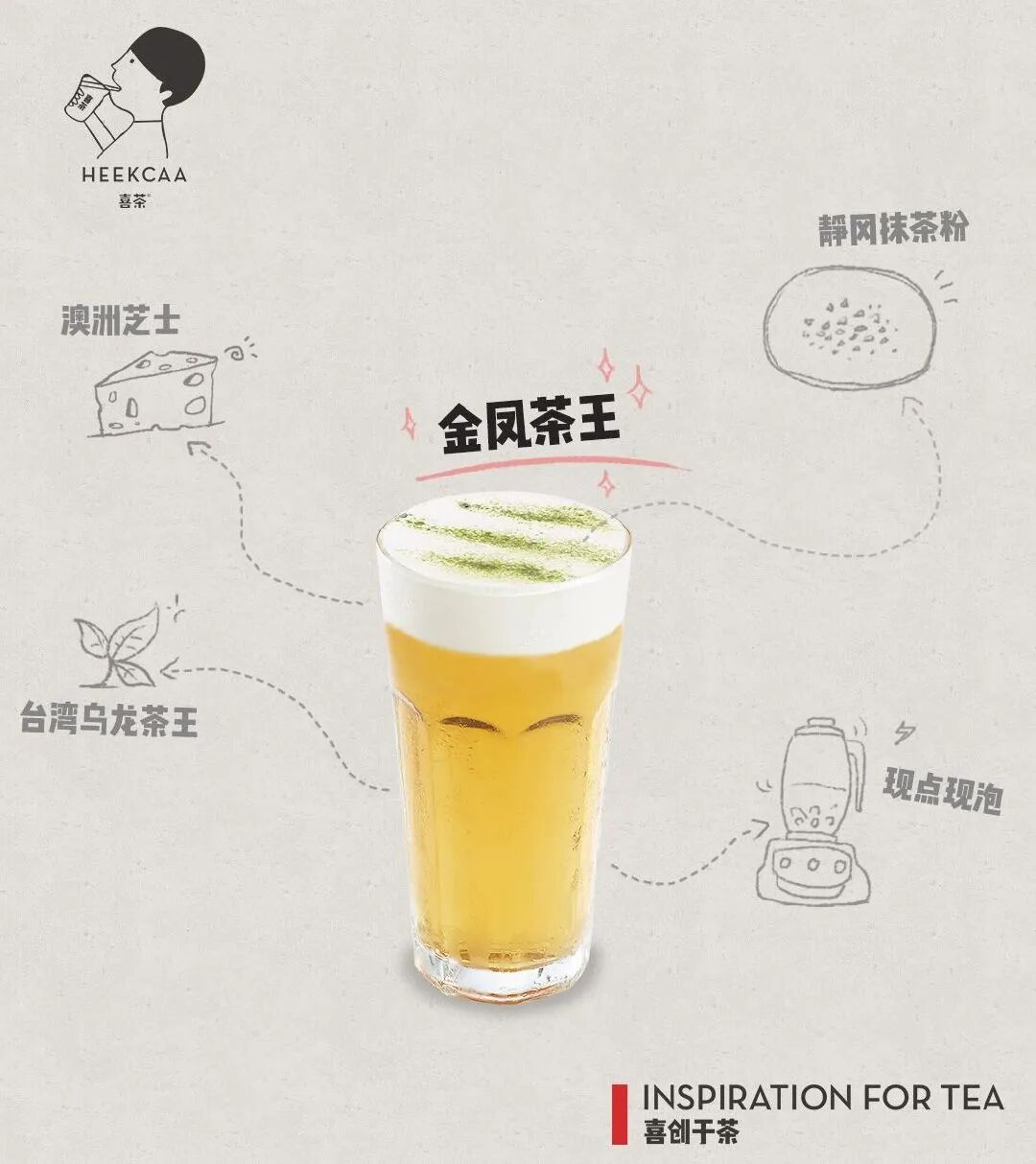 以乌龙茶为主、混合几款茶叶得到的金凤茶王,尤其因口感清新成为喜茶代表作,一度被黄牛炒到80元一杯。