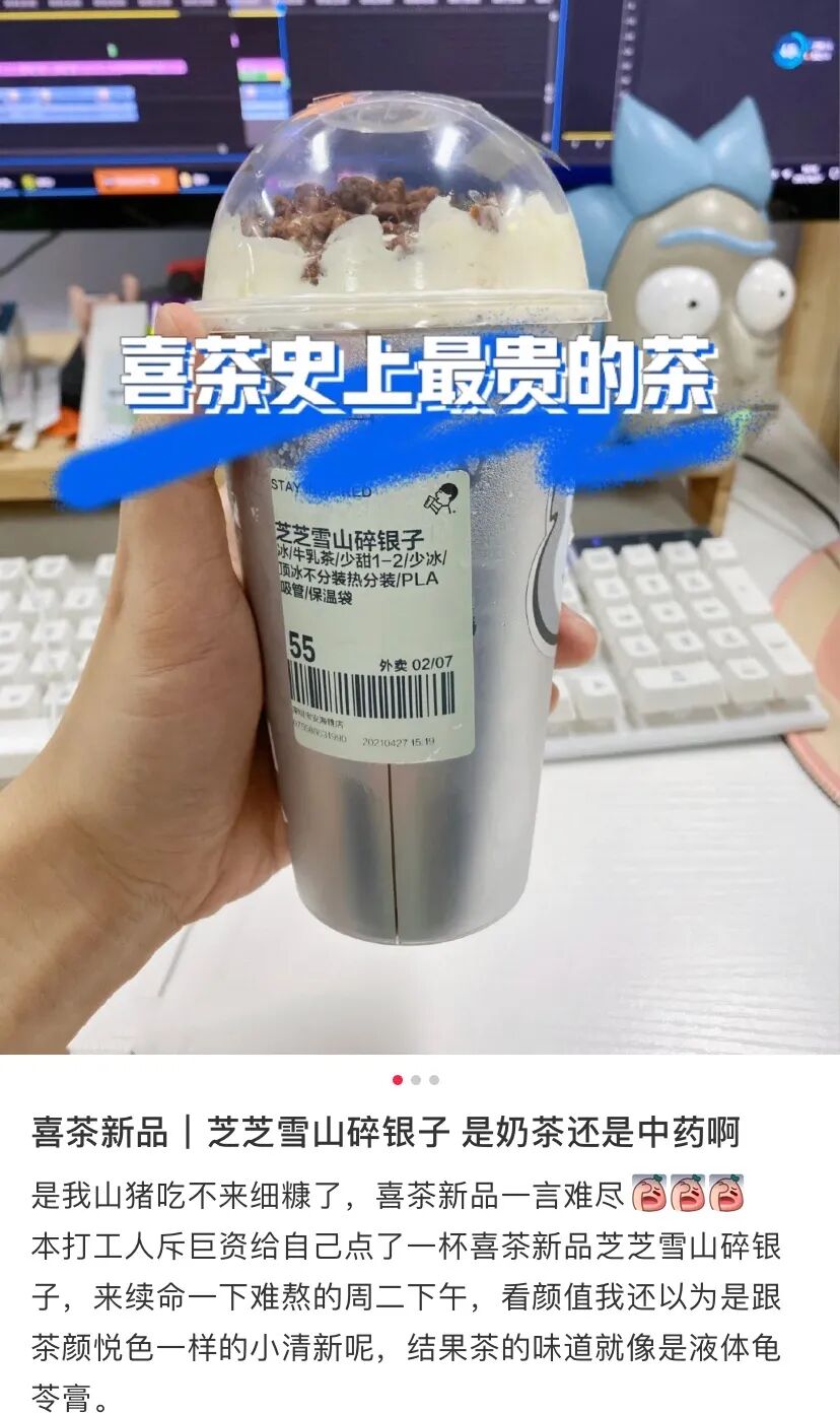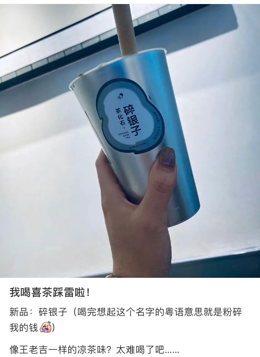毕竟现在喜茶门口排长队的人,一大半都是奔着自己心中好喝的饮品去的。这次推碎银子,下次再出别的,推得多了总有几个好喝且火的单品,自己赚到钱,也满足了顾客的口腹之欲。