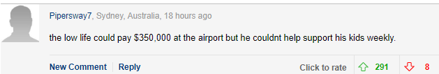 在机场一下子拿出35万澳币,却不愿意每周付抚养费!真是个败类!