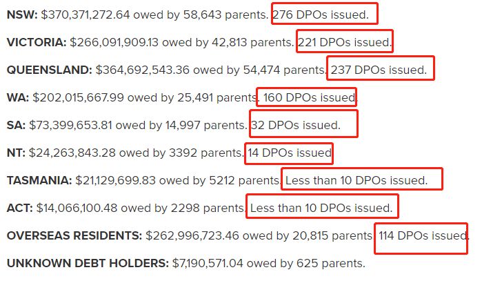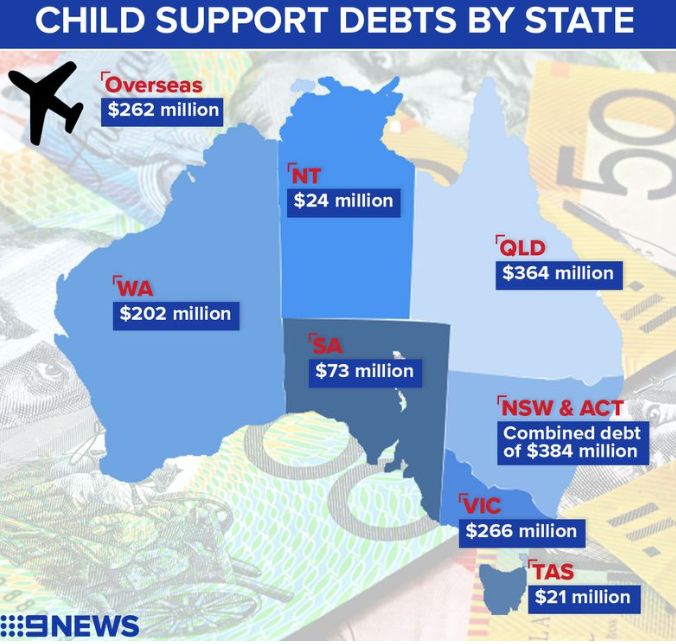 澳大利亚周围成千上万的父母欠了超过15亿澳元的子女抚养费,现在面临着