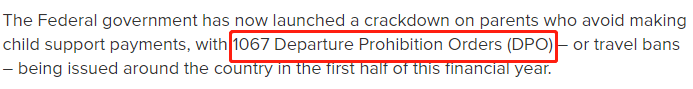 联邦政府现在已经对避免支付子女抚养费的父母作出了惩罚,并在本财政年度上半年在全国各地签发了
