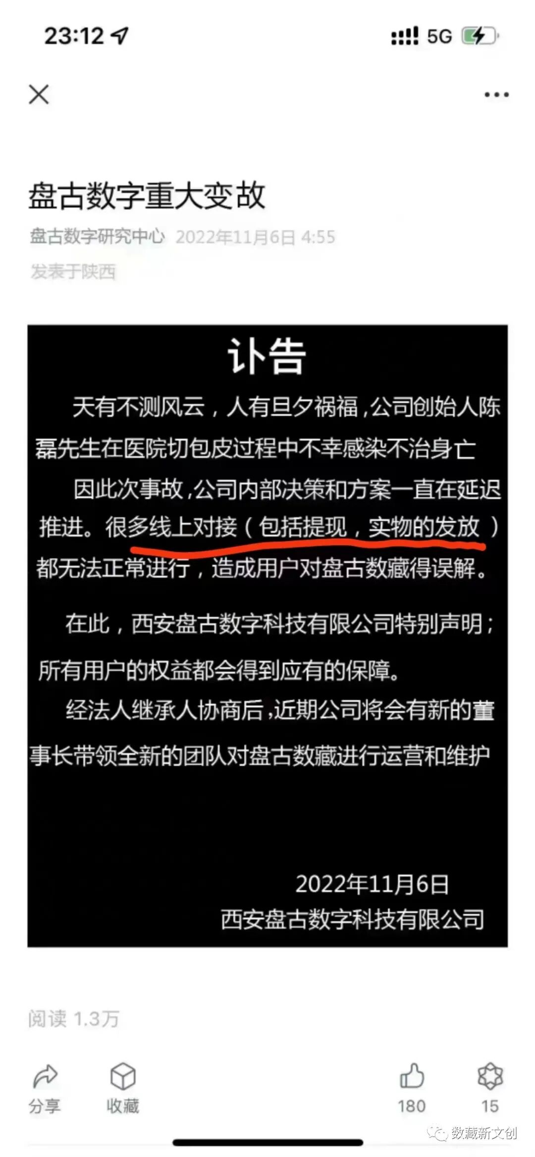 具体情况不得而知,留给时间去验证。但我们积极呼吁,数字藏品平台需要守法经营,善始善终,莫碰红线!