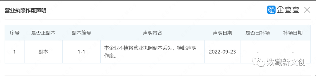 再深入梳理,该公司于9月23日发布声明称营业执照副本不慎丢失,并声明作废。