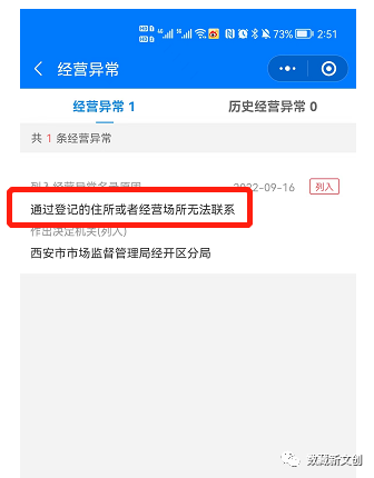 列为“经常异常”名单的时间为9月16日,距今已经超过50天,公司一直没有前往处理。一般情况下都会积极配合处理,不然非常影响业务的开展。