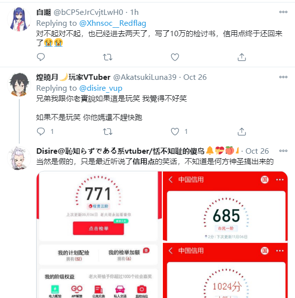 很快,这个好玩的创意就在部分中国网友这传开了,不少人顺着这个“设计”编出了各种段子,有说自己“信用点太低要被抓走”,有的假装“信用点非常高想要出售”,把这场荒诞戏推向了高潮。