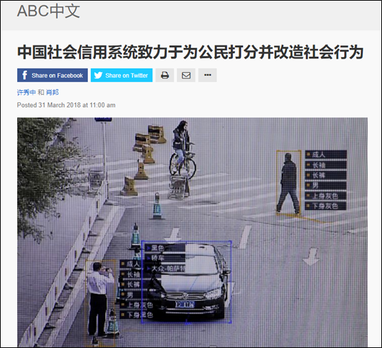 比如下图这个台湾新闻,就把我们的“个人信用体系”,和商业平台给予用户优惠和使用福利的评分工具混为一谈,把这个商业平台的评分,说成是中国政府对公民一举一动进行监控和考量的“社会评分”。