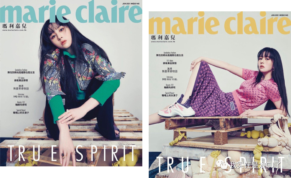 在台版《PRESTIGE》出街之前,沈月才刚上过港版《Marie Claire》,而且是双封企划。