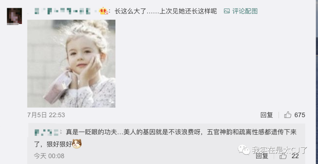 有些是说她长得越来越像爸爸,“没脖子”“很男相”……