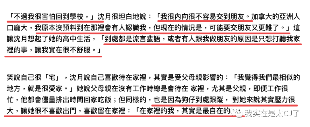 看完以上自述,你会不会觉得沈月是一个害怕曝光、不想生活在镜头前的单纯女孩?