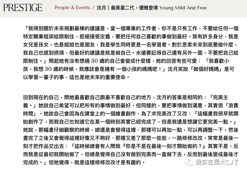 简单点说,是沈月最近登上了台版《PRESTIGE》封面,并接受了杂志专访。