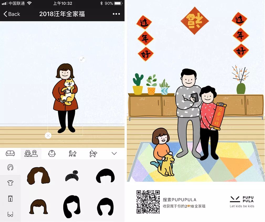 This other family photo WeChat campaign takes a much more creative approach by enabling users to build their own "Family drawing". Users have a lot more freedom with a wide choice of elements and structures that they can include into their artwork.