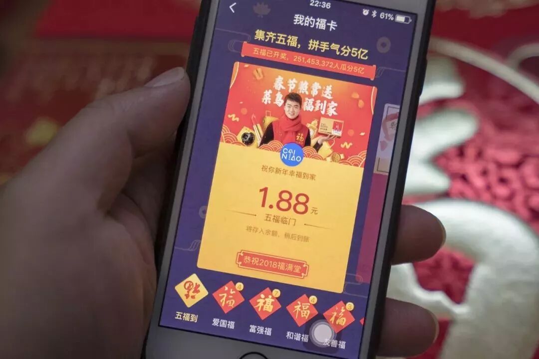 This is the 3rd year Alibaba launched the same campaign. All that users need to do is scan a picture of the Chinese character Fu (福) to receive a Fu card. The users had to collect 5 different cards.