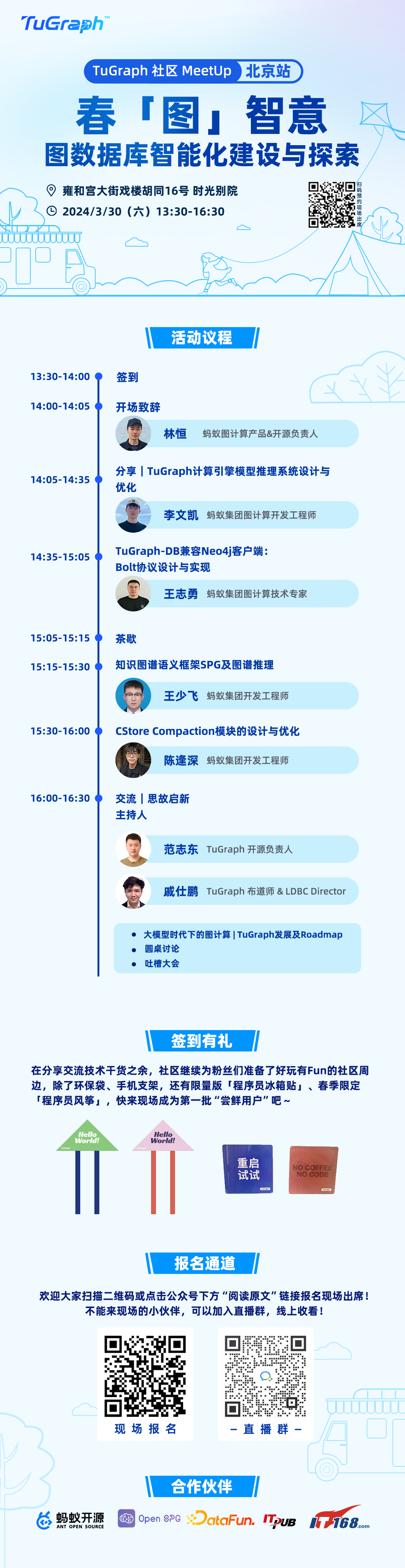 2021年加入蚂蚁图计算团队,当前主要负责开源图数据库tugraph-db的研发工作,包括技术演进规划。曾在滴滴出行的数据库团队,参与公司内部自研分布式存储系统的研发运维工作。工作多年一直从事在数据库行业,经历过SQL、NoSQL、TP、AP、Graph等各种存储系统,对数据库领域有深刻的理解。