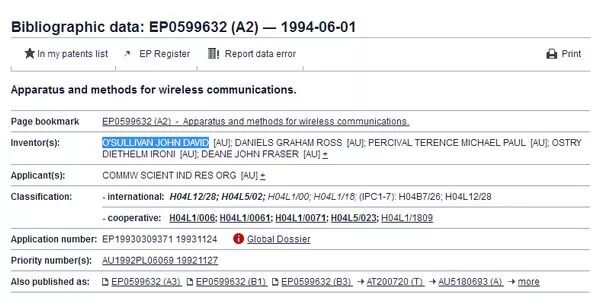CSIRO拥有的“Apparatus and methods for wirelesscommunications”专利(图片来自网络)