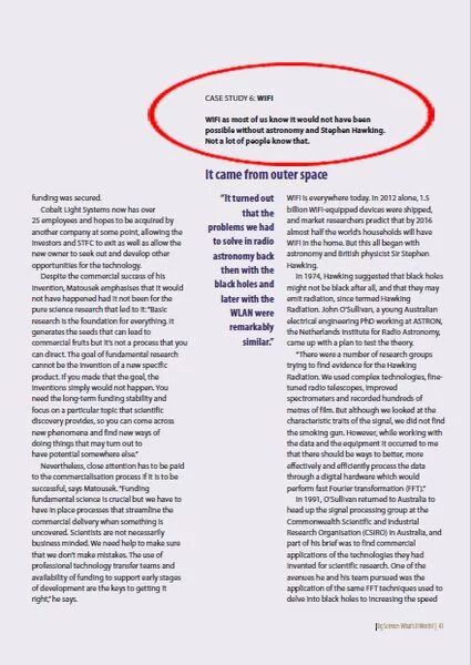“BIG SCIENCE: What’s It Worth?”将WiFi列为大科学重大创新案例之一(图片来自网络)