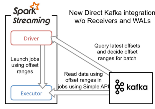 此方法缺点是它不会更新Zookeeper中的偏移量,因此基于Zookeeper的Kafka监视工具将不会显示进度。但是您可以在每个批处理中访问此方法处理的偏移量,并自行更新Zookeeper。