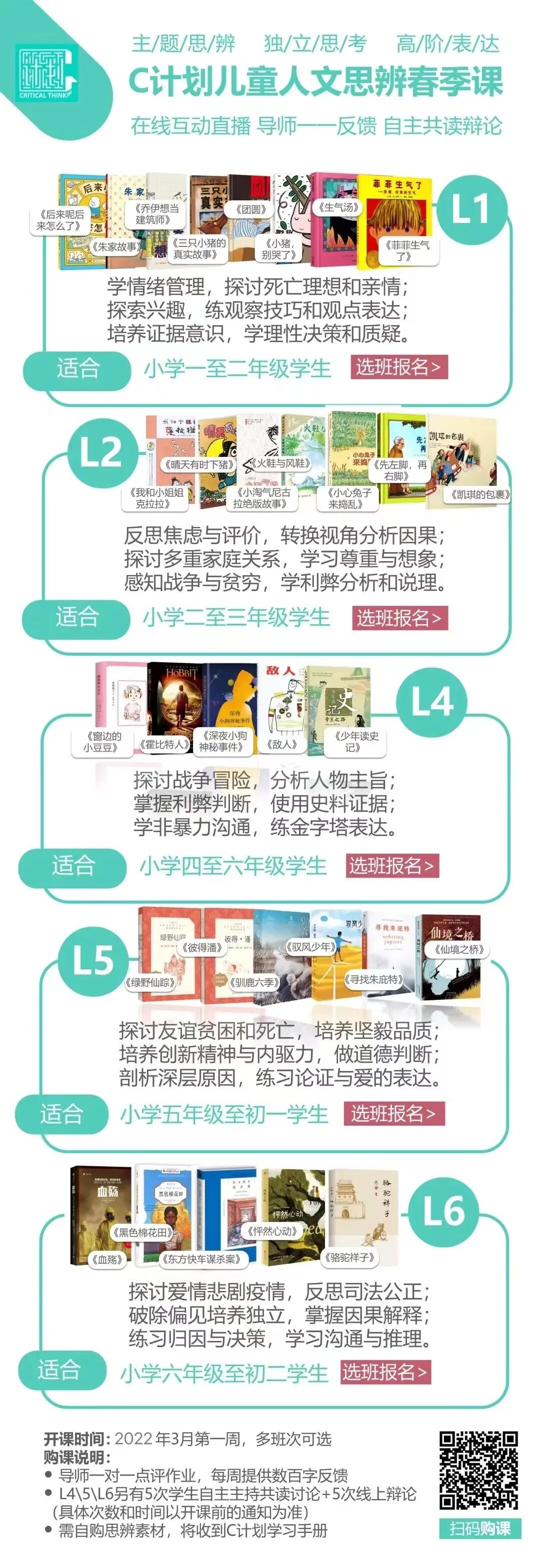 疫情之下,我们想和家长、孩子们一起读三本书,疗愈内心、积极思考。为此我们策划了一个系列读书活动,详情请查看C计划思辨教育今日推送第二条。