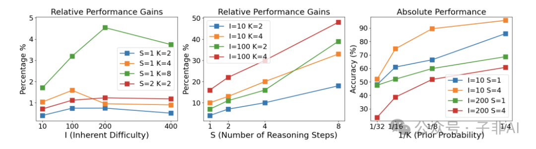 先验概率:指正确答案的先验概率,即在没有任何其他信息的情况下,正确答案出现的可能性。先验概率越低,LLM 猜对答案的可能性越小,Sampling-and-Voting 方法可以有效地扩大搜索空间,提高找到正确答案的概率。