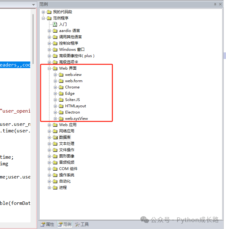 aardio中开启浏览器有非常多种方式,具体可以看范例-》Web界面: