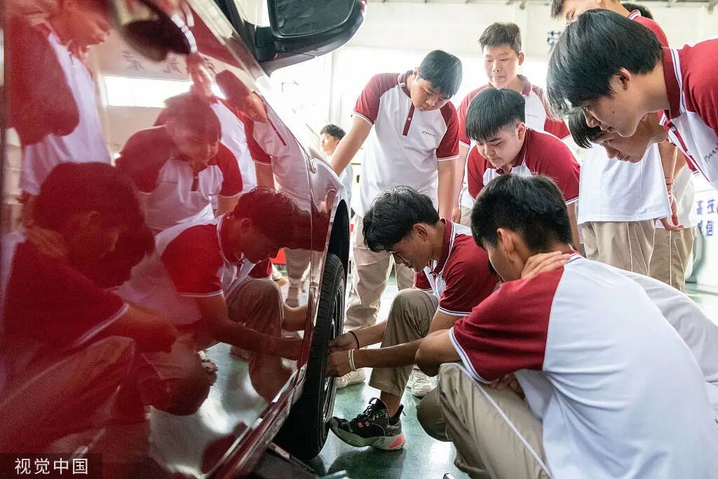 为什么报汽修?那时候想得很简单,就看电影里修车,像《速度与激情》《变形金刚》,觉得好酷炫好帅,希望自己也能有本领组装一台很帅的车。对了,我从小喜欢闻机油味,发动机打火启动瞬间,会弥漫一点机油味,我觉得好香啊,就偷偷地使劲闻。我也问过别人,都说一般,或者好臭,但我很迷恋这种味道。后来我老师说这可能是“方向味”,意思是指引了我人生方向。我对自己认知很清楚,因为偏科,上了普高不一定能考进自己心仪的大学。初二开始吧,就听不进去了,后来100分可能就考个四五十分吧。我决定保送职校,初中班里同学传来传去,传到整个年级,传到别的学校。大家会开玩笑,说我去职校就为了混混日子,只是去玩而已。我很难过,但他们这样质疑,我更加坚定要证明自己选择没错。我就希望能把一件事情做到最好,不是浑浑噩噩地度过(时间)。我爸妈也说,一定要对得起自己的选择。当时真的很单纯,我以为汽车有4个轮子,1个方向盘,加上汽油,就能跑了。我以为汽车修理都是普通操作,没想到有这么多系统化东西,工程量这么大。我参加的机电修理比赛有四个部分,车轮定位、发动机拆装、汽车定期维护和汽车故障诊断,每个部分都很累。比如说车轮定位,我们要拆减震器,就是一个弹簧。男生确实有优势,力量更强大,他们一下就拔出来了减震器,我根本拔不动,动都不动一下。有一次,我拆下来了,实在塞不回去,很崩溃,内心已经在吼了,但是周围那么多人,没真的吼出来。最后用一个长把手压住横拉杆,使劲往死里弄,才把减震器弄进去。拆也要用长把手,这是我跟老师一起研制的方法,把它压在我胳膊下,借力到汽车一个部件下,胳膊一压,手一拔,就好拔出来了。就是坚持这样用巧力去训练。再比如汽车定期维护,节奏特别快,很多部件要抱出来,恨不得飞起来做。我们要穿工鞋防打滑,每只鞋里面有两斤重的铁板吧。一共五个流程,我做完第一个流程,就没力气了。没办法啊,就是硬着头皮坚持下来。![]()
