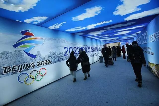 太子城站出站口,乘客走过2022北京冬奥会主题长廊。太子城站内,到处也可见冬奥文化元素。![]()