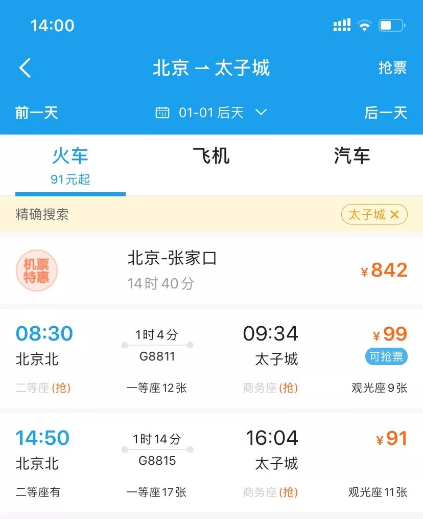 小编也在第一时间购买到了31号上午8点30分左右从北京北站出发的二等座票,票价为99元。返程票价为91元。抢票的过程很顺畅,建议大家从12306直接购买,如果从清河、昌平购买显示无票,可以试试从北京北抢票,始发站票量往往比较充裕。站内无需取票,只需刷身份证即可进站。