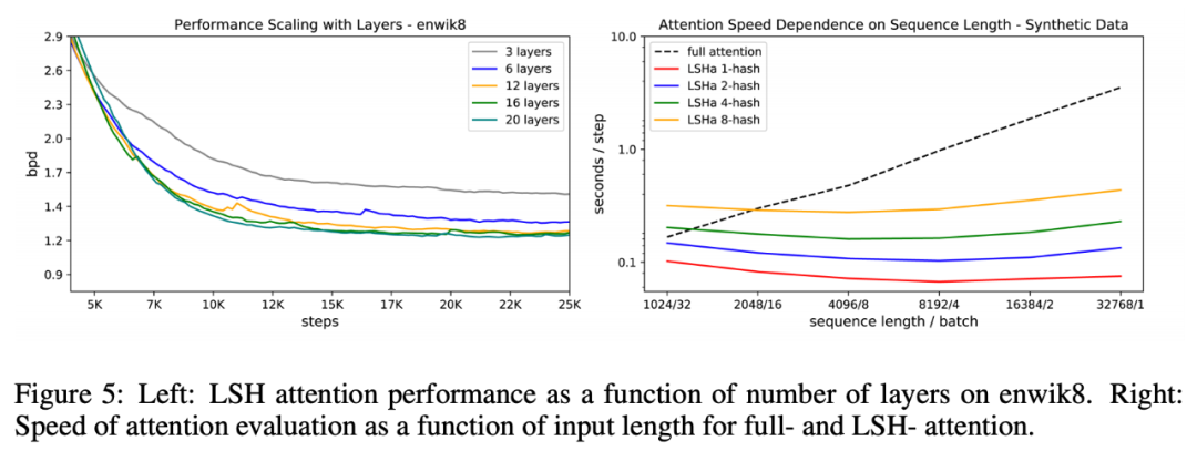 比如较早的工作 Sparse Transformers [4] ,里边有一张图显示出处理的序列长度都是 3000+ 的: 比如大名鼎鼎的 Reformer [5] ,演示性能的序列长度都是以 K 为单位的: