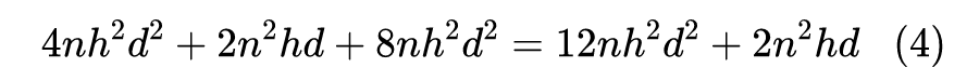 对于 base 版来说,这意味着 !也就是说,只有当序列长度超过 1536 时,SA 的计算量才大于 FFN,在这之前,都是线性复杂度的 FFN 占主导! 这还不止,由上面的结果我们可以得到 Transformer 层总的计算量为