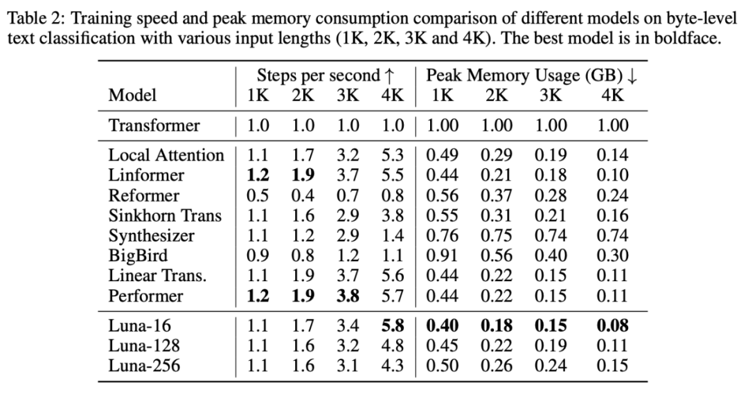 最后是比较新的工作 Luna,提供了一个比较综合的对比表格,同样支持我们的结论: