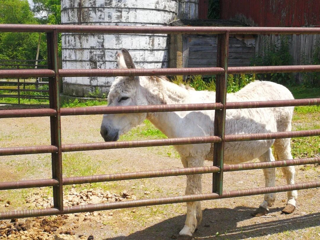 老凯农场的面积是我们农民朋友圈里最小的,但出产比谁都不次。除了野牛,他也养羊,还养了一头驴。这头驴神圣不可侵犯,原本是女儿丽贝卡小时候买了给她做玩伴,结果这倔驴不仅不让骑连碰也不能碰。现在丽贝卡已经是三个孩子的妈妈,驴也二十大几了,既原谅了它一生不羁放纵爱自由,现在必须给养老送终。