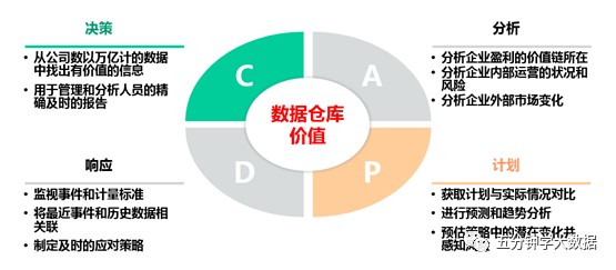 数据仓库系统的作用能实现跨业务条线、跨系统的数据整合,为管理分析和业务决策提供统一的数据支持。数据仓库能够从根本上帮助你把公司的运营数据转化成为高价值的可以获取的信息(或知识),并且在恰当的时候通过恰当的方式把恰当的信息传递给恰当的人。