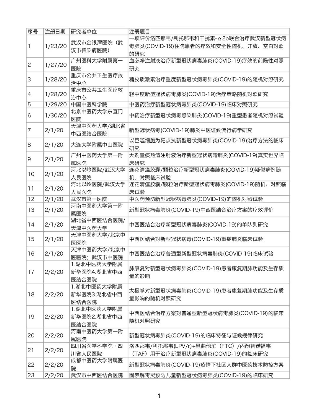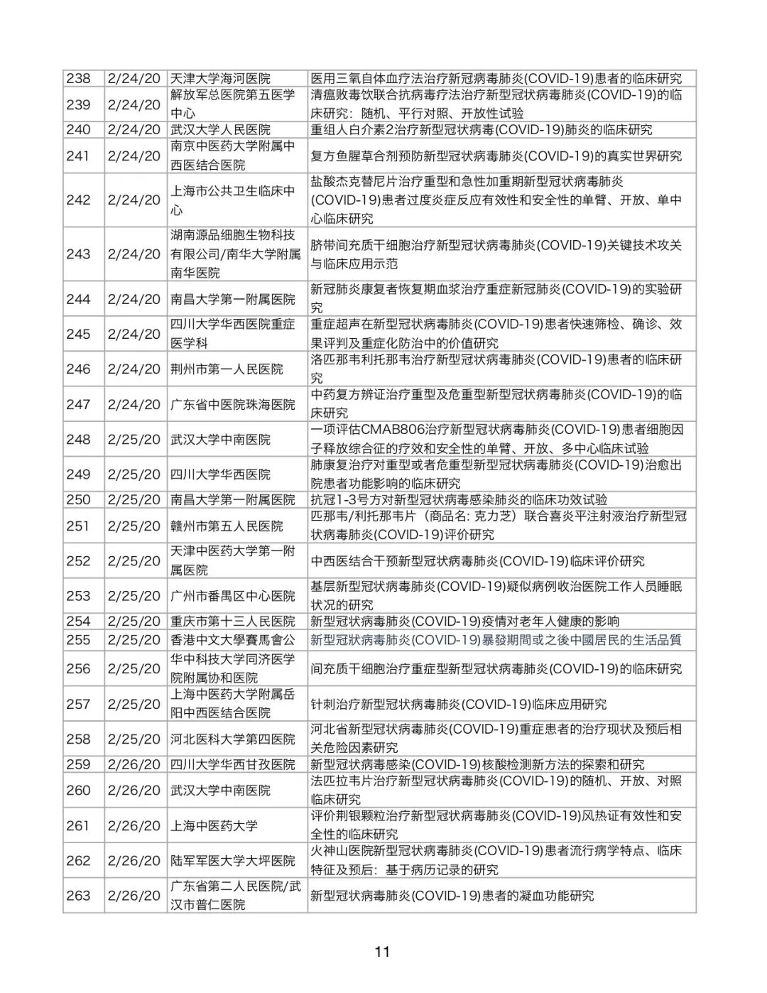 附件:从 1 月 23 日到 2 月 27 日,在中国临床试验注册中心新型冠状病毒肺炎临床研究索引中已经有 271 个结果。(上下滑动可看全部内容)