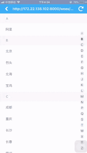 以上便使用weex-ui完成了weex端indexlist组件的开发,效果如下:
