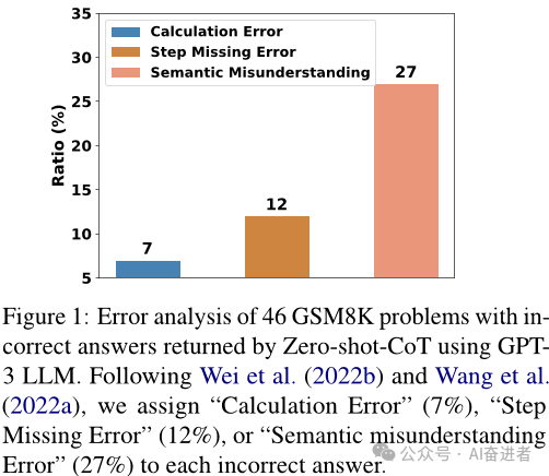 错误分析和计划存在的影响比较(表6和图5)。作者通过对错误类型的分布和计划存在的影响进行分析,进一步探讨了零/少量样本学习方法的优势。结果表明,计划的存在可以减少计算错误和缺失推理步骤的错误,而零/少量样本学习方法可以在不依赖人工示例的情况下实现这一点。