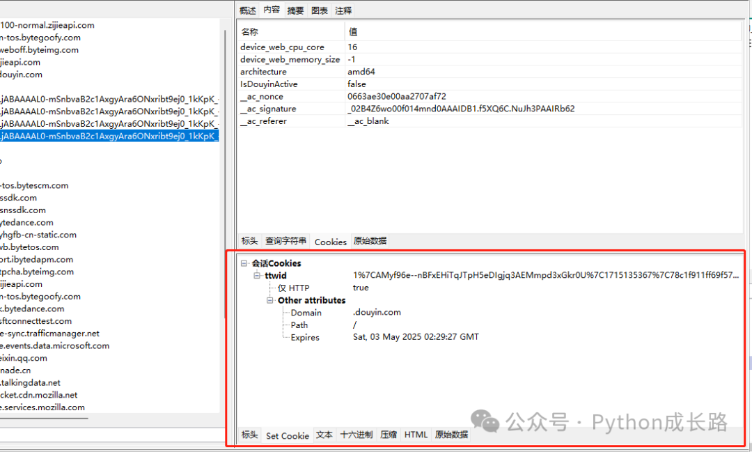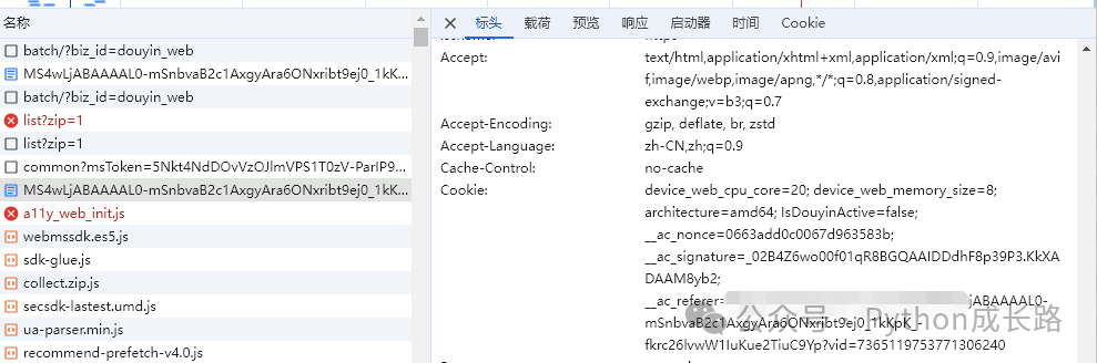 __ac_signature的实际作用是为了得到ttwid,如果__ac_signature有效,第二次请求就会在响应头加一个set-cookie设置ttwid的值,这个值才是后面需要用到的cookie值。