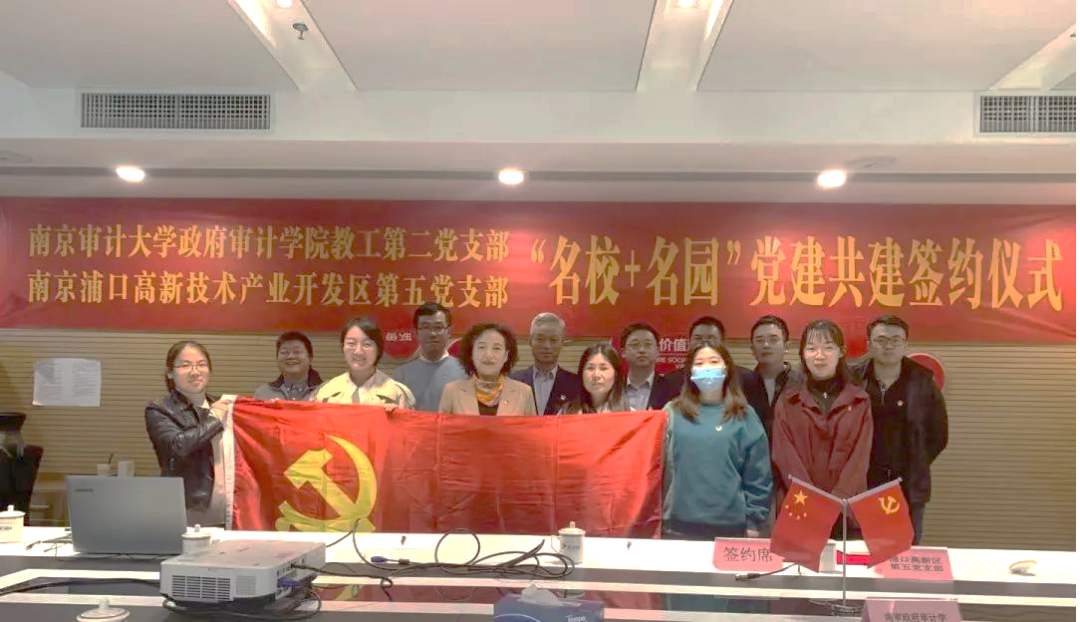 南京审计大学政府审计学院充分发挥党建引领作用,积极开展“党建+”,联学共建、双融双促,以建设示范点、签署合作协议等实现业务交流与内嵌。学院教工党支部先后与江苏紫金农商行、南京浦口高新技术产业开发区、宁波银行南京分行、芜湖市繁昌区审计局等单位开展支部联学活动,签订“名校+名园”等共建合作框架,为教师服务地方社会经济发展搭建桥梁。每年学院都会派出研究生赴审计署各特派办、地方审计机关实习,学院党委在有3名以上党员的实习小组成立临时党支部,鼓励他们参与所在实习单位的党建活动,以点带面,充分发挥党支部的战斗堡垒作用和党员的先锋模范作用。