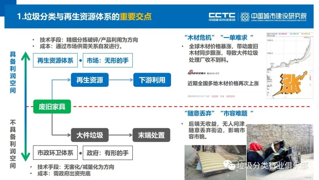 大件垃圾收运兼具环卫、再生资源双体系的痛点和难点。当大件垃圾没有利润空间时属于环卫体系,有利润空间时属于再生资源体系。