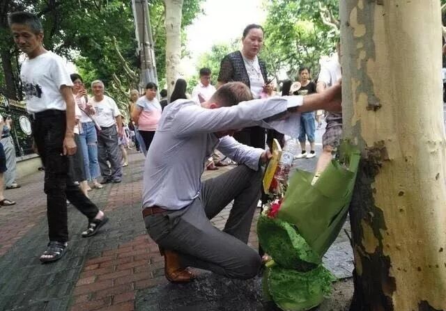 也有一位署名为“上海80后叔叔”的过路人献上花束并表达哀思:“愿你在天堂一切都好。”网络上还流传着一张图片:一名世外小学的外教面对着梧桐树下的花束掩面而泣,以表达对逝者的悼念,他手中拿着的是最后一次教孩子的课本。