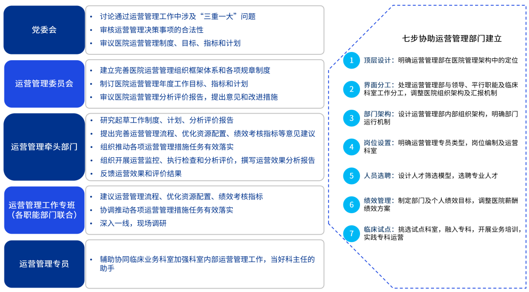组建运营管理牵头部门,搭建适应高质量发展的公立医院运营管理体系。