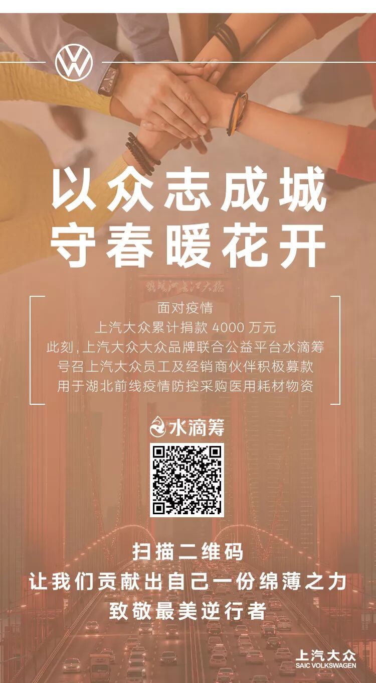 共克时艰,大众品牌全新推出五大安心服务。聚众之力,上汽大众全心捐助疫区!
