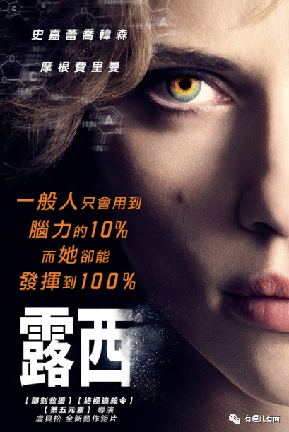 在台北生活期间,露西遭到恶男暴打,以致药品破裂进入血液之中。谁知令人难以置信的事情就此发生,药品激发了露西大脑的潜力,令人脑中约90%的神经元相继苏醒。从此,露西开始了“开挂”人生,有了超能力。