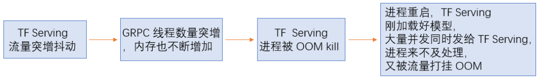 业务反馈在流量的高峰期 TF Serving 容器持续出现OOM的情况,在平台监控上可以看到OOM的事件次数。