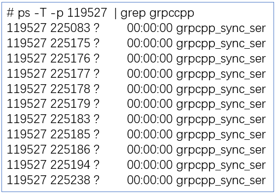 进入到容器内部查看,果然发现TF Serving进程生成了很多 grpcpp_sync_ser线程。